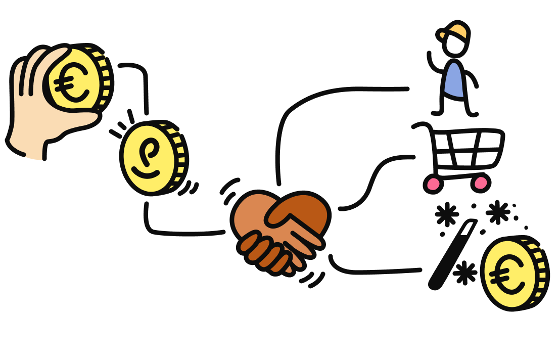 Nous nous rémunérons uniquement du côté des associations, avec une commission de 5 % lorsqu'elles convertissent leurs potos en euros, et de 4 % lorsqu'elles paient leurs fournisseurs directement en potos.